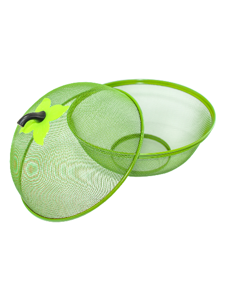 Яблоко в котором можно хранить яблоки и кабачки тоже. Корзина и крышка сделаны из мелкой металлической сетки. Овощи и фрукты в ней отлично проветриваются и абсолютно недоступны для мух, ос и других насекомых. Бонус: можно промывать овощи прямо в корзине, как в дуршлаге. Красивой сервировки вам!