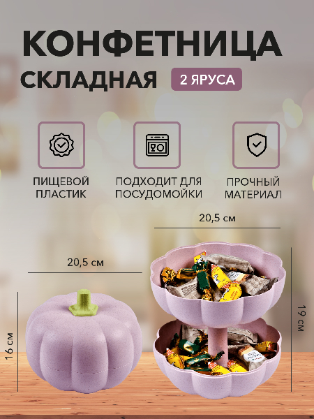 Вазочка с крышкой, которая легким движением превращается в двухуровневую тарелку для сервировки на столе конфет, орешков и других мелких вкусняшек. Когда вазочка закрыта она имеет вид тыквочки, отлично подходит для сладостей на хеллоуин. Конфетного настроения вам!