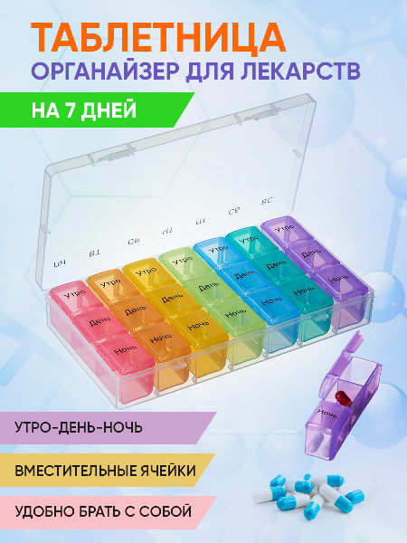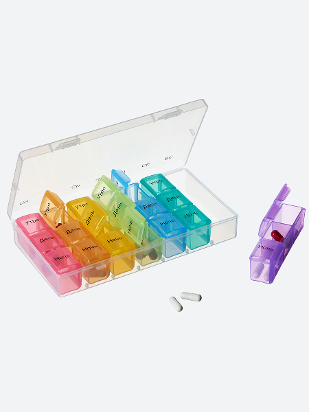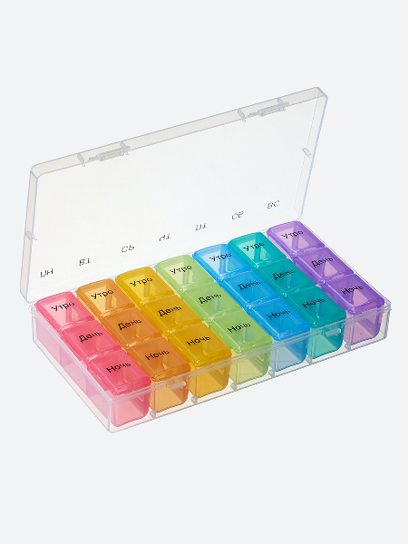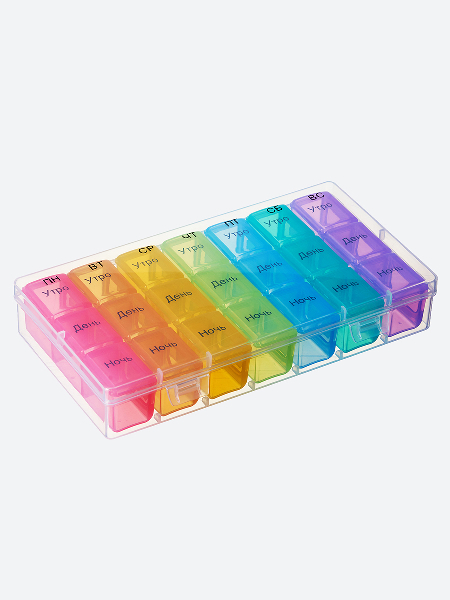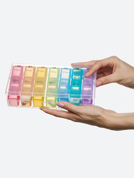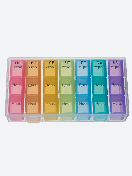 Контейнер для таблеток и капсул на неделю с отдельными пеналами на каждый день. В пенале три ячейки: утро, день, вечер. Ежедневные пеналы удобно носить с собой. А заполняя контейнер один раз на всю неделю вы точно ничего не упустите и сможете легко соблюдать график приема. Помогает упростить прием препаратов пожилым людям и детям. Здоровья вам и близким!
