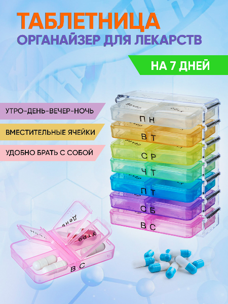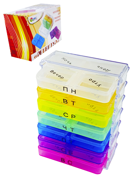 Контейнер для таблеток «РЕЦЕПТУР» - недельный органайзер для таблеток помогает контролировать прием препаратов.