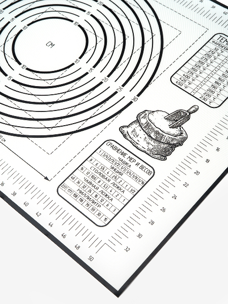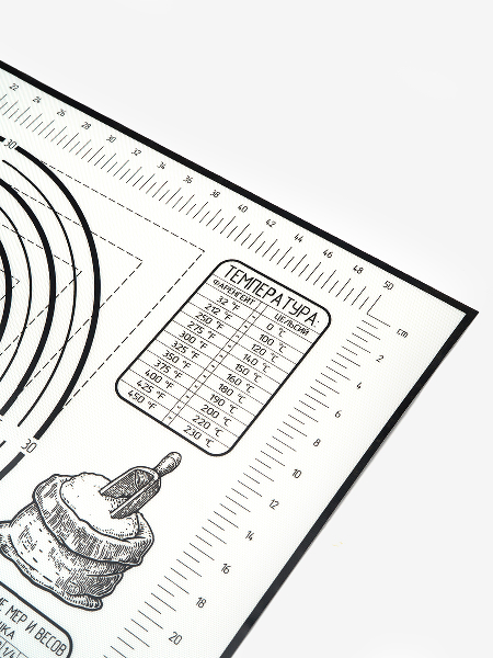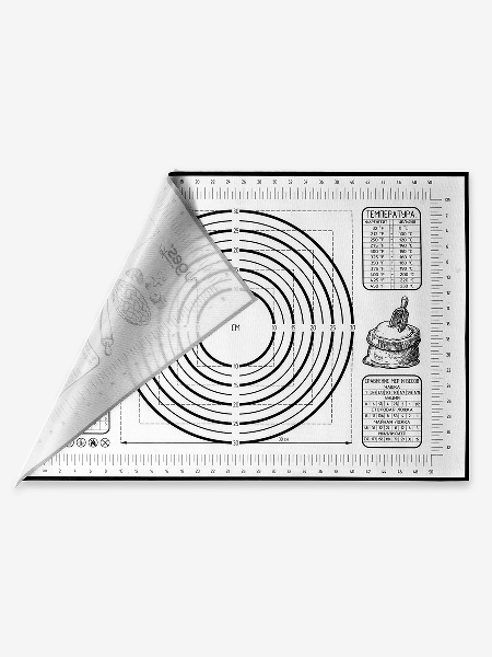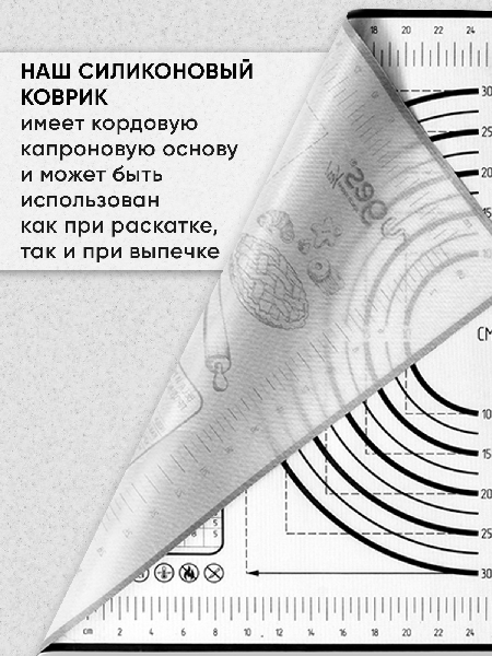 Внимание: наш коврик имеет кордовую капроновую основу которая позволяет и раскатывать и запекать в духовке. Коврик выдерживает температуру от -40 до +230 C.