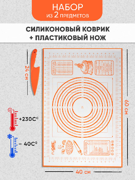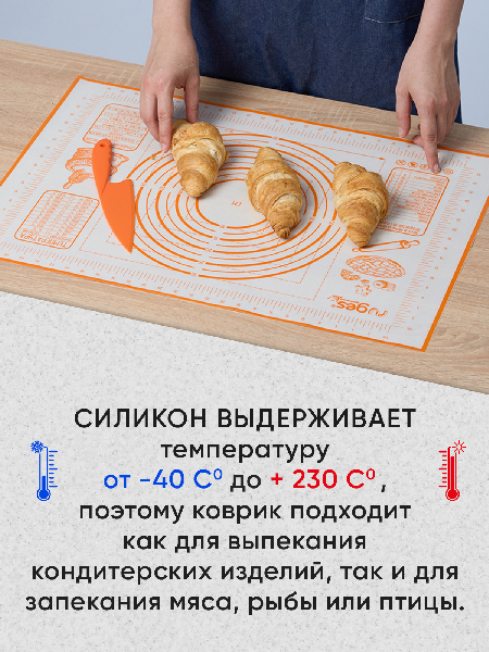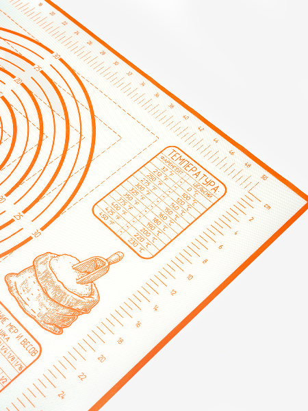 Внимание: наш коврик имеет кордовую капроновую основу которая позволяет и раскатывать и запекать в духовке. Коврик выдерживает температуру от -40 до +230 C.