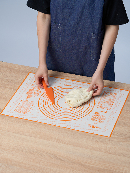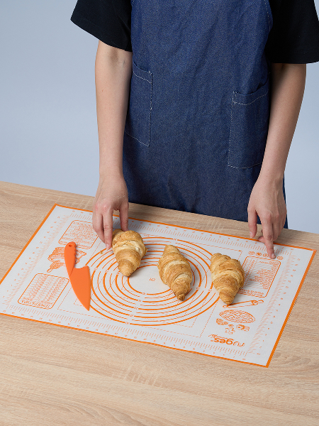 Полипропиленовый нож идёт в комплекте специально для того, чтобы резать тесто непосредственно на коврике, поскольку стальными ножами по силикону резать нельзя. Коврик на котором тесто можно раскатать, сформировать булочки или пирог и отправить в духовку на коврике же. Вот такой у нас БЕЙКЕР. Конечно можно и без него и кто-то обязательно назовет его излишеством и блажью. Ведь можно и по старинке: стол мукой посыпать, на противень все переложить, перемыть стол и противень - опять же польза. Просто наслаждайтесь! Потому что не надо досыпать муку - тесто не прилипает к БЕЙКЕР. И противень смазывать не надо - потому что на коврике БЕЙКЕР не пригорает и не пристает. И в холодильник его можно. Рекомендуем всем, кто любит готовить, печь и запекать.