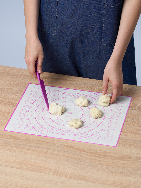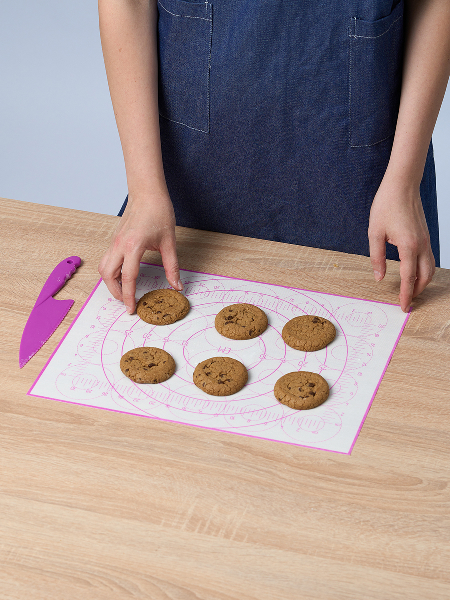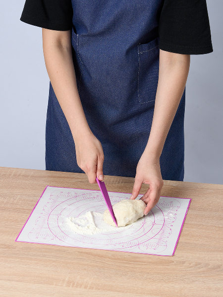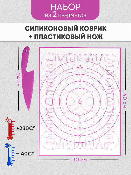 Внимание: наш коврик имеет кордовую капроновую основу которая позволяет и раскатывать и запекать в духовке. Коврик выдерживает температуру от -40 до +230 C. Полипропиленовый нож идёт в комплекте специально для того, чтобы резать тесто непосредственно на коврике, поскольку стальными ножами по силикону резать нельзя. Коврик на котором тесто можно раскатать, сформировать булочки или пирог и отправить в духовку на коврике же. Вот такой у нас БЕЙКЕР. Конечно можно и без него и кто-то обязательно назовет его излишеством и блажью. Ведь можно и по старинке: стол мукой посыпать, на противень все переложить, перемыть стол и противень - опять же польза. Просто наслаждайтесь! Потому что не надо досыпать муку - тесто не прилипает к БЕЙКЕР. И противень смазывать не надо - потому что на коврике БЕЙКЕР не пригорает и не пристает. И в холодильник его можно. Рекомендуем всем, кто любит готовить, печь и запекать.