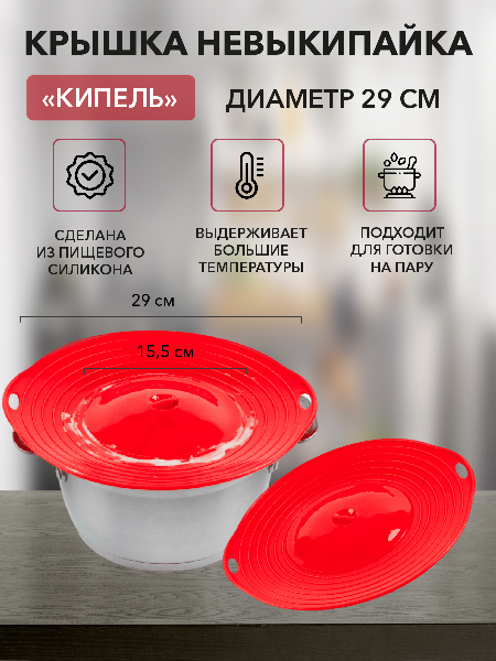 Использовать невыкипайку «Кипель» можно на варочной поверхности плиты, в духовке и в микроволновой печи. А можно оперативно организовать из силиконовой крышки пароварку – просто накройте сверху обыкновенной крышкой!
