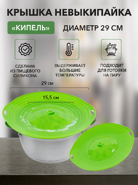 Использовать невыкипайку «Кипель» можно на варочной поверхности плиты, в духовке и в микроволновой печи. А можно оперативно организовать из силиконовой крышки пароварку – просто накройте сверху обыкновенной крышкой!
