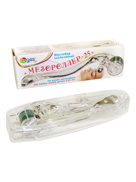 Роликовый массажер с иголочками. 540 тонких стальных иголок длиной 0,25 мм каждая. Касаясь кожи иголки делают микропрокол, благодаря чему в коже запускается процесс естественной регенерации, что способствует синтезу коллагена и омоложению кожи. Так же иглы создают каналы и помогают питательным веществам сывороток и кремов лучше проникать в кожу. Прибор исключительно личного пользования. Рассчитан на курс из 10 сеансов. Красоты вам!