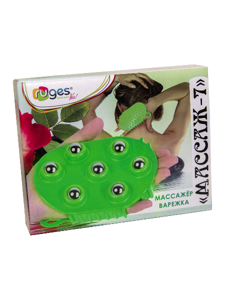 Массажная варежка с шариками "Массаж-7" - механический массажер с четырьмя видами массажных поверхностей, который одевается на руку и используется для массажа и самомассажа всего тела.
