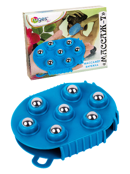 Массажная варежка с шариками "Массаж-7" - механический массажер с четырьмя видами массажных поверхностей, который одевается на руку и используется для массажа и самомассажа всего тела.