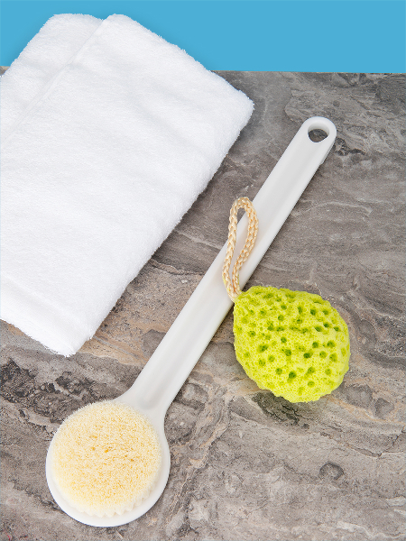 Мочалка и щетка на длинной ручке - тот комплект который поможет идеально помыться даже в труднодоступных местах, например отлично потереть спину. Мочалка создает пену и эффект мягкого пилинга, а щетина щетки обеспечивает активную циркуляцию крови, позволяет коже быт в тонусе, обеспечивает более глубокий и жесткий пилинг. Чередуйте по ощущениям. Хорошего настроения вам!