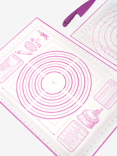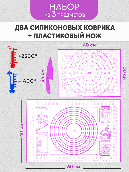 Набор силиконовых ковриков для раскатки и выпечки "Бейкер" с ножом, фиолетовый