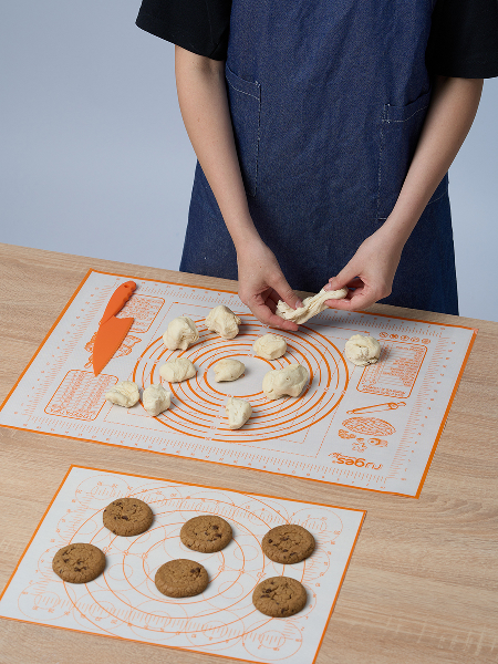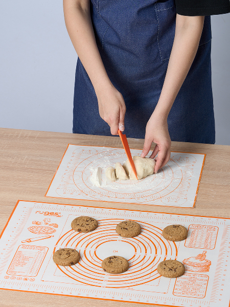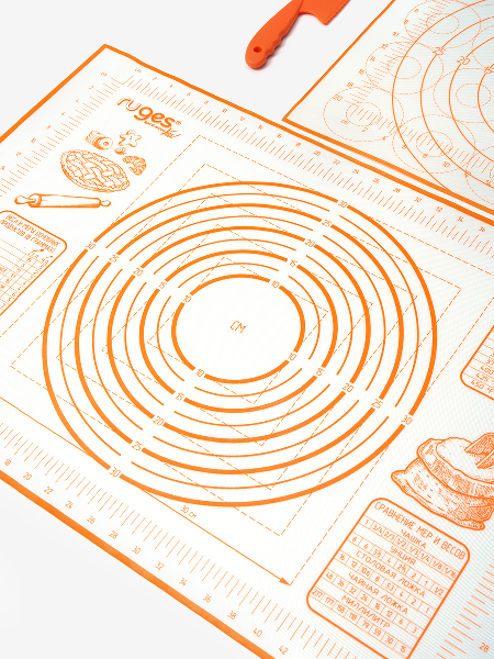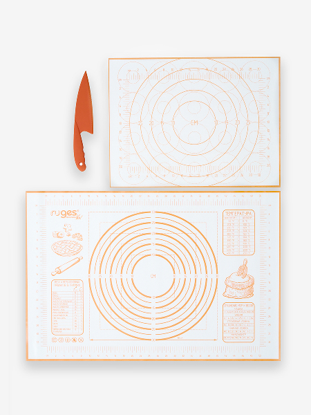 Набор силиконовых ковриков для раскатки и выпечки "Бейкер" с ножом, оранжевый