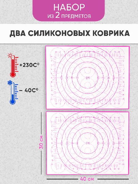 Внимание: наши коврики для выпечки и раскатки теста имеет кордовую капроновую основу которая позволяет и раскатывать и запекать в духовке.Набор ковриков для выпечки и раскатки "БЕЙКЕР " -комплект из двух силиконовых ковриков для выпечки теста и запекания других продуктов. Коврик не надо смазывать маслом или посыпать мукой. К коврику не пристают продукты в процессе запекания.На коврике удобно вымешивать, раскатывать и выпекать тесто без досыпания муки. На коврике есть шкала диаметров для коржей и шкалы для порционного деления теста. Коврик для выпечки и раскатки теста выдерживает температуру от -40 до +230 C.ВНИМАНИЕ: РАЗМЕРНАЯ ШКАЛА30х20 см.Фактический размеры коврика: 40х30х0,1 см; Вес набора: 131 г. Материал: силикон. Комплектация: коврик 2 шт.