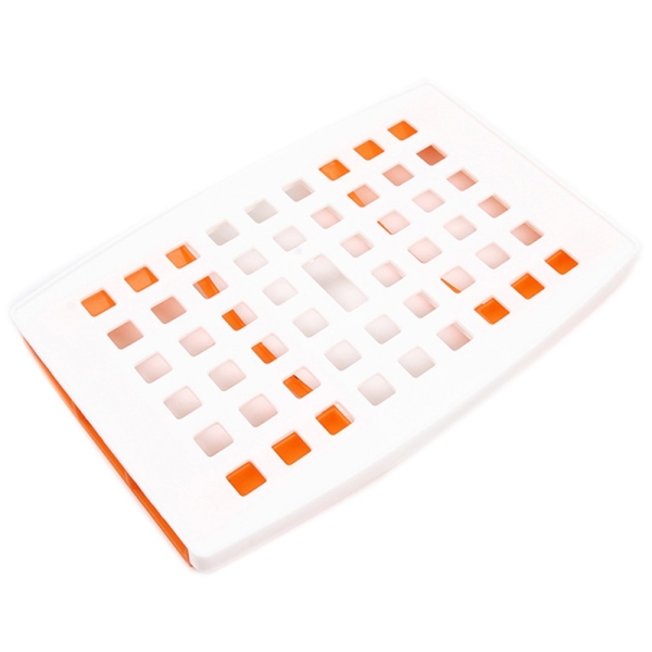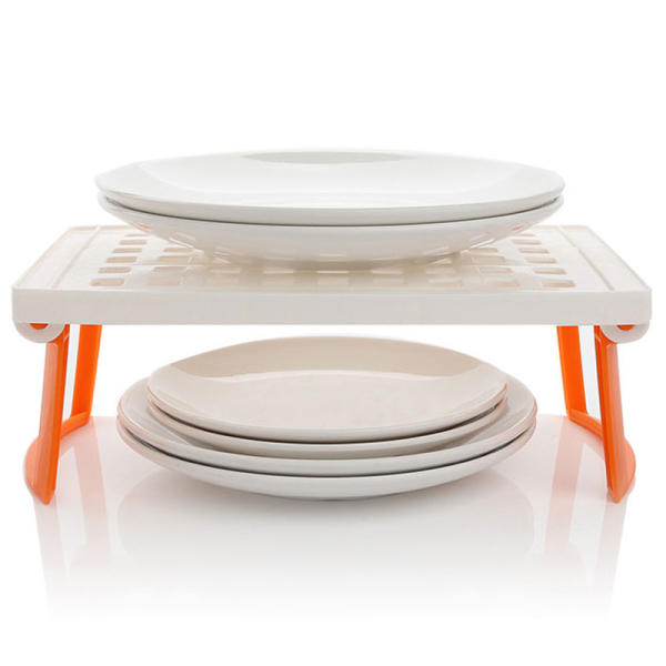 Подставка «Плюстарелка» имеет складные ножки, легко устанавливается на подносе микроволновой печи или поверхности стола и быстро убирается, занимает мало места при хранении в сложенном виде.