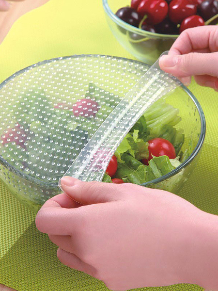 Крышки на любую посуду из силиконовой пленки. Квадратные, они растягиваются в два с половиной раза. Подходят, чтобы накрывать круглое и прямоугольное, горячее и холодное. И бонус - в пленки “УНИВЕРСАЛЬ” можно заворачивать продукты. Отлично сохраняют свежесть пищи и не дают запахам еды распространяться по помещению или холодильнику. Удобно брать еду в дорогу. Выбирайте размер! В комплекте две штуки.